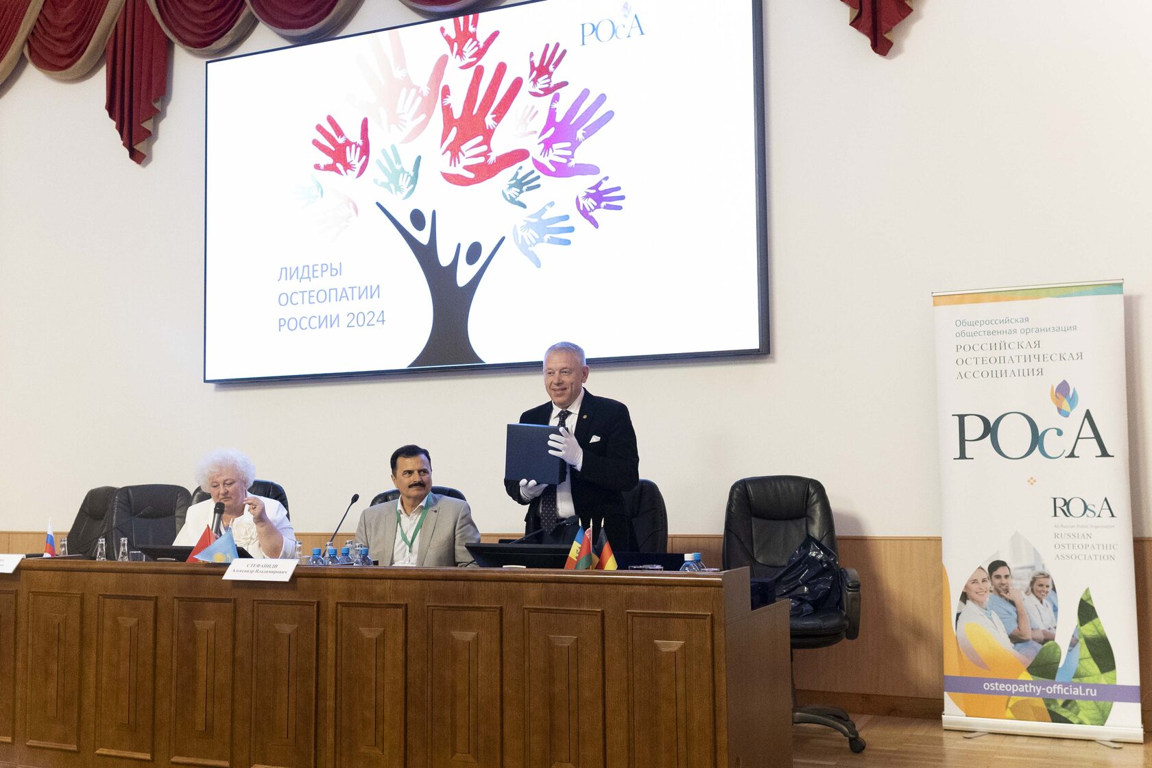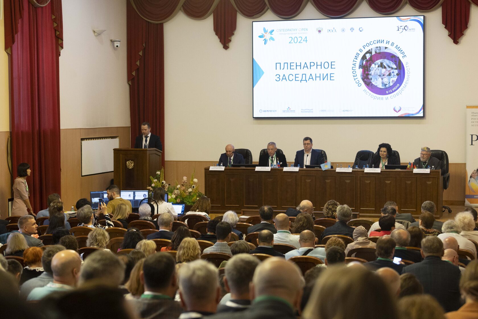 8 июня 2024 года в рамках пленарного заседания свои доклады об истории и развитии остеопатии в мире представили: д.м.н. Дмитрий Евгеньевич Мохов с ярким выступлением, включающим видеоролик «Остеопатия России», Константин Владимирович Шарапов – место остеопатии в России: экскурс в историю и современный статус специальности; президент OIA Бузер Бойд, д.м.н. Кристиан Хартман рассказали об истории остеопатии в мире и том, почему остеопатия в историческом отражении может стать краеугольным камнем будущего медицины; д.м.н. Елена Сергеевна Трегубова – может ли остеопатия быть доказательной; д.м.н. Татьяна Тимофеевна Батышева – остеопатия и детская реабилитация.